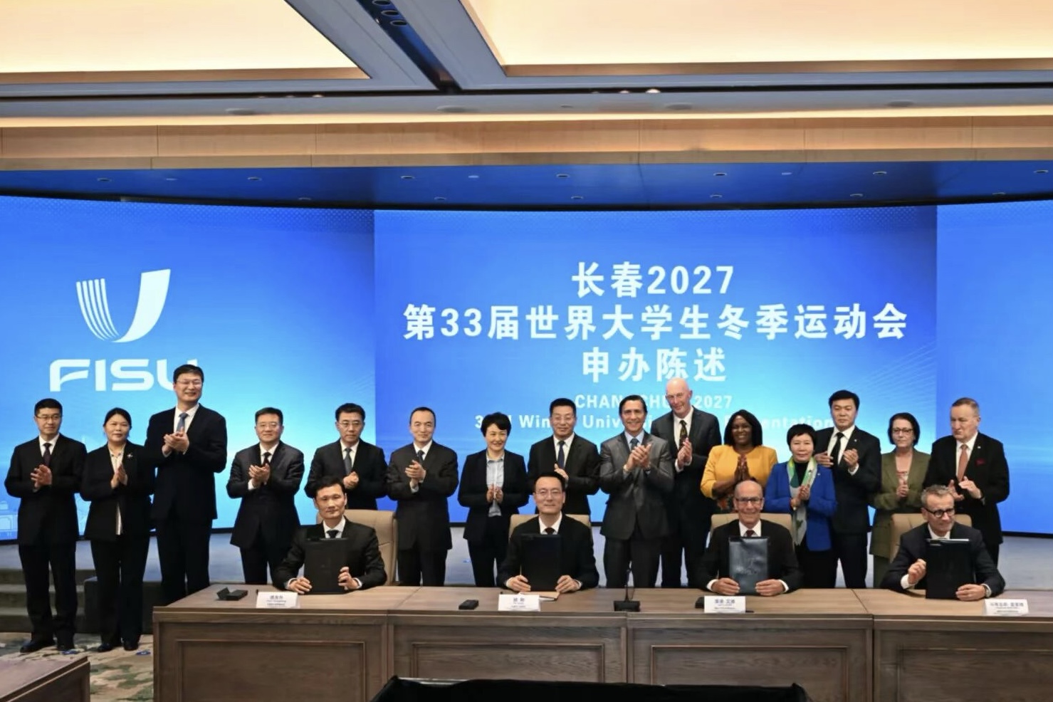 На заседании постоянного комитета Международной федерации студенческого спорта, состоявшемся в послеобеденное время 26 ноября (среда), президент МФСС Рено Эйд официально объявил, что город Чанчунь провинции Цзилинь успешно получил право проведения XXXIII Всемирской Универсиады зимних видов спорта 2027 года. Между Международной федерацией студенческого спорта, Китайской федерацией студенческого спорта и городом Чанчунь был совместно подписан Соглпшение о проведении XXXIII Всемирской Универсиады зимних видов спорта 2027 года в Чанчуне».
