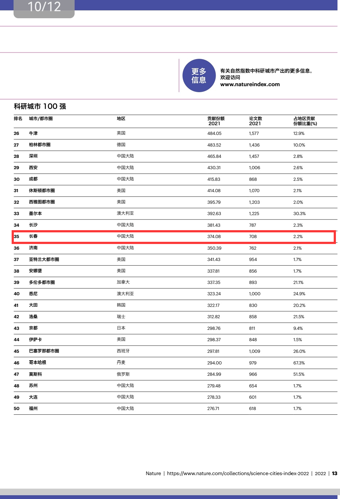 Рейтинг анализирует научные результаты городов по пяти основным дисциплинам: химия, физика, науки о Земле и окружающей среде, биология и науки о здоровье. Чанчунь занял 10-е место в Китае по химии! Эти объективные данные подтверждают статус города как важного научного центра Северо-Восточного Китая с мощным потенциалом и динамичным развитием.